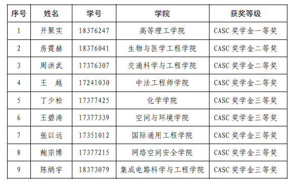 经学生申请、学院推荐、校学生资助中心评审,现将2020年我校CASC奖学金获奖名单公示如下。