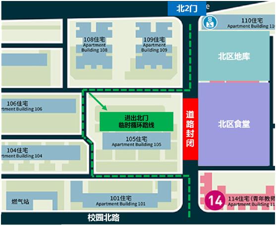 学校将于近日对北区食堂屋顶进行吊装施工,为保障作业期间车辆及行人安全,将于2020年11月15日0:00至5:00临时封闭北区食堂西侧道路,详细位置如下图所示。施工期间,后勤保障处将在封闭路段安排专人值守,保障封闭路段应急通车功能,如遇消防、救护、抢修等紧急情况,请拨打24小时电话:15665881000、13501288793。