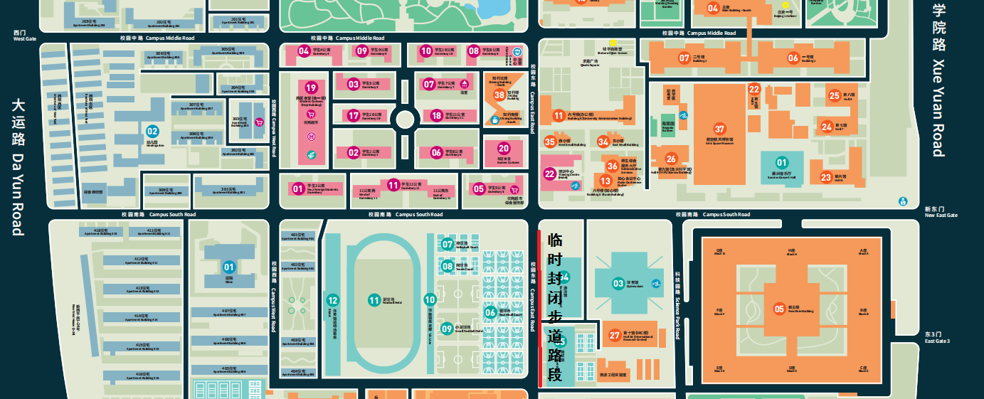 学校将于近期进行校园东路南段步道维修施工工作,为保障施工安全并减少交通影响,拟定于2021年9月30日 22点—2021年10月8日5点临时封闭校园东路南段(游泳馆西侧及天行网球馆西侧)道路东侧步道,届时该路段东侧步道将无法通行,请您绕行西侧步道通行。(详见下图)