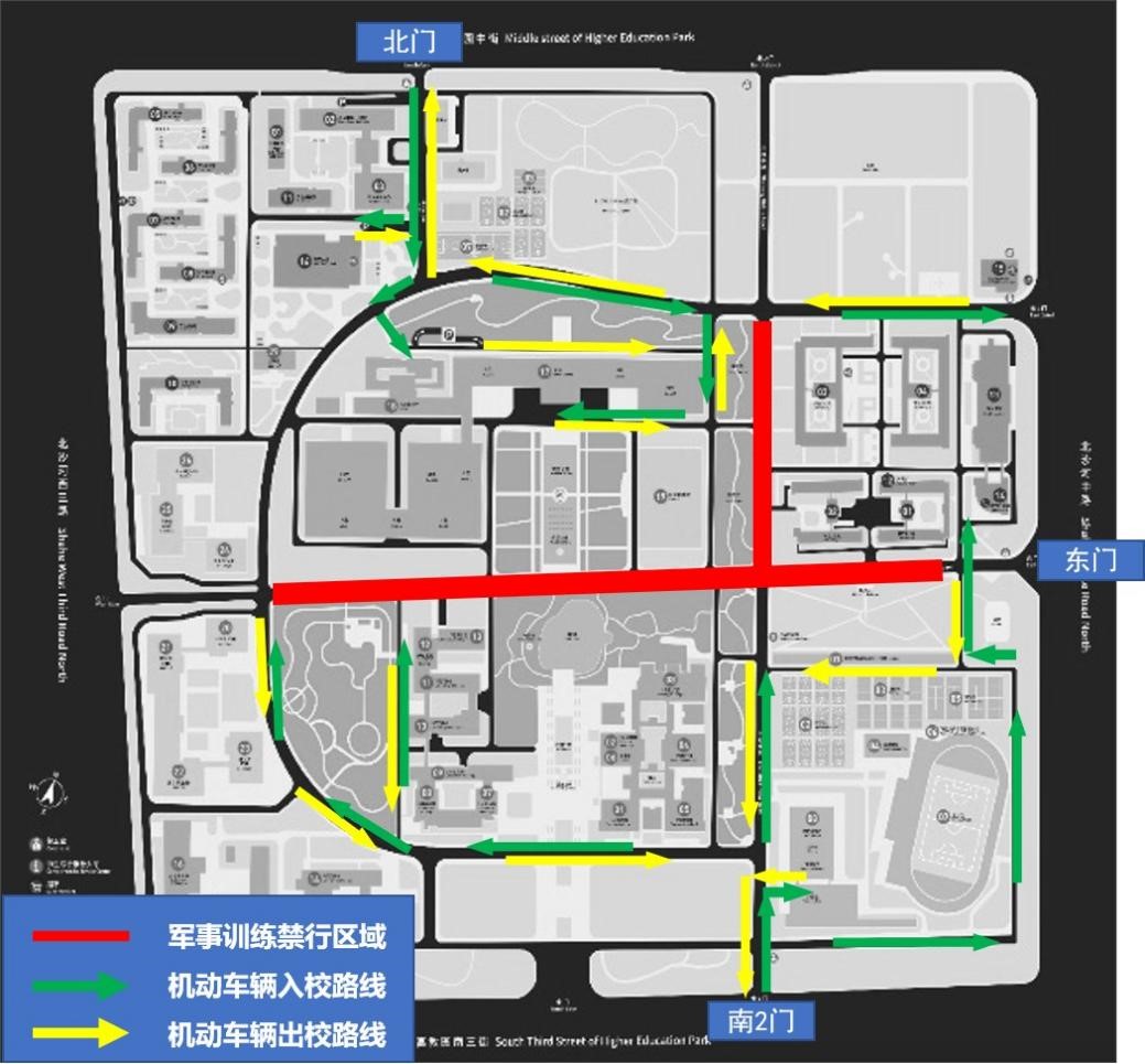 根据《北京航空航天大学2025级学生军训方案》要求,为切实做好军训期间安全管理工作,确保军训工作圆满完成,现将军训期间沙河校区交通管理措施通知如下: