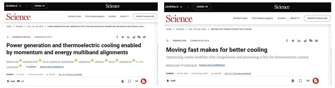 对于科研经历,他自我评价道,“始于基础研究,但不止于此”。起初,他的研究重点是新型材料的探索,更偏向于前沿基础性研究,重心在于从材料物理传输机制出发,探究材料性能优化的理论方法和实验手段。随着研究的不断深入,秦炳超越来越意识到开展热电器件和应用研究的重要性。由于热电制冷器件在精确控温和靶向控温方面的独特优势,其在5G通信光??椤⒐庀思す馄鞯攘煊虻木嘉驴赜凶挪豢商娲挠τ眉壑?。尤其是在当前国家能源战略需求和“双碳”背景下,发展新型高性能热电制冷材料及其器件显得尤为关键。他本人也将以此为出发点,逐步将研究重心由材料基础研究向器件应用推广过渡。对于科学研究,他的最大梦想就是自己所做的研究、做出的成果、开发的新材料能够实际应用于重要领域。