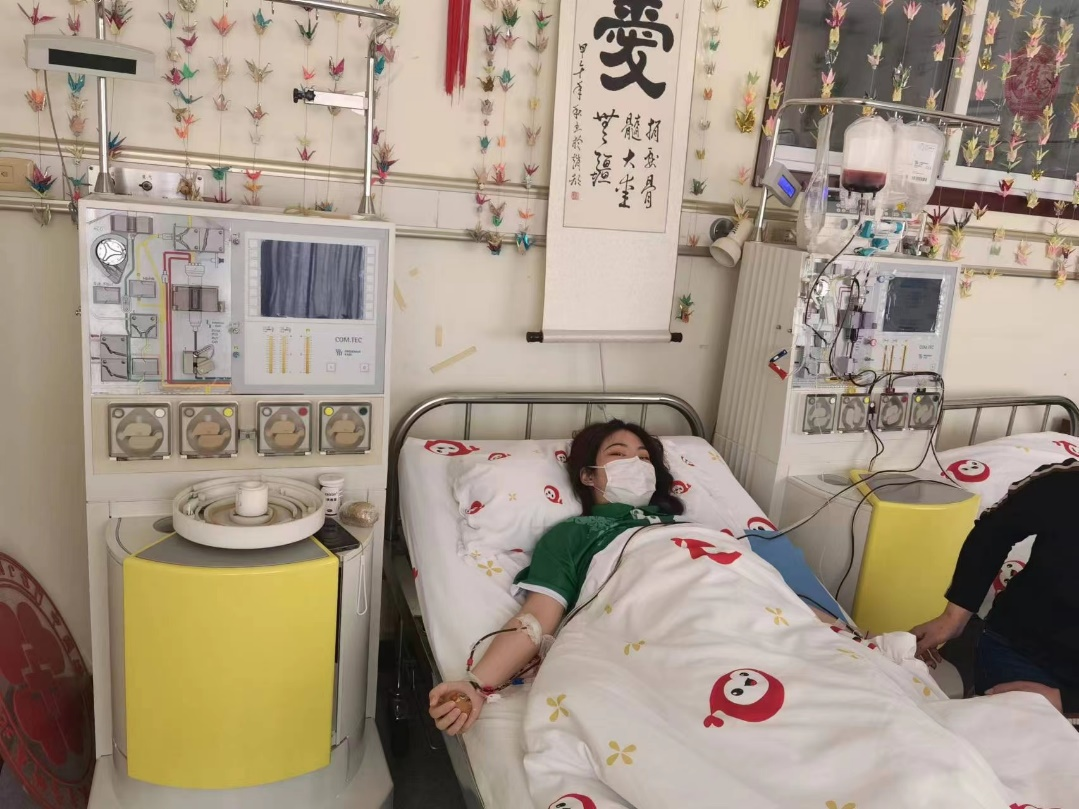 2022年11月21日,空军总医院住院部15层采集室,晏丽安静地躺在床上,采集共进行5个小时,捐献出200毫升造血干细胞。血液从晏丽的左臂被采集出来进行体外循环,经过血细胞分离机后从右臂输血管缓缓输回体内,而被分离出的造血干细胞将给另一个生命带去新的希望。