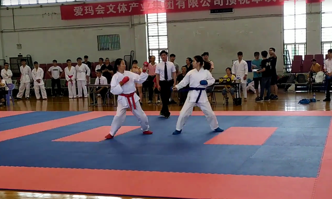 参加空手道比赛的晏丽(右一)
