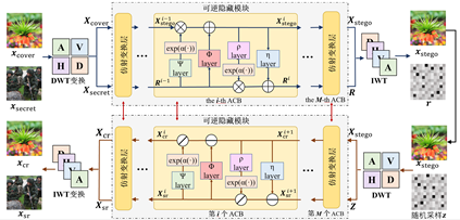 针对上述问题,景俊鹏创新了基于智能建模的大容量图像隐藏技术,设计了融合隐藏与恢复的双向推理架构,利用可逆神经网络同时实现隐藏和恢复过程,实现了高达10dB的质量增益,较现有方法提升约2倍。