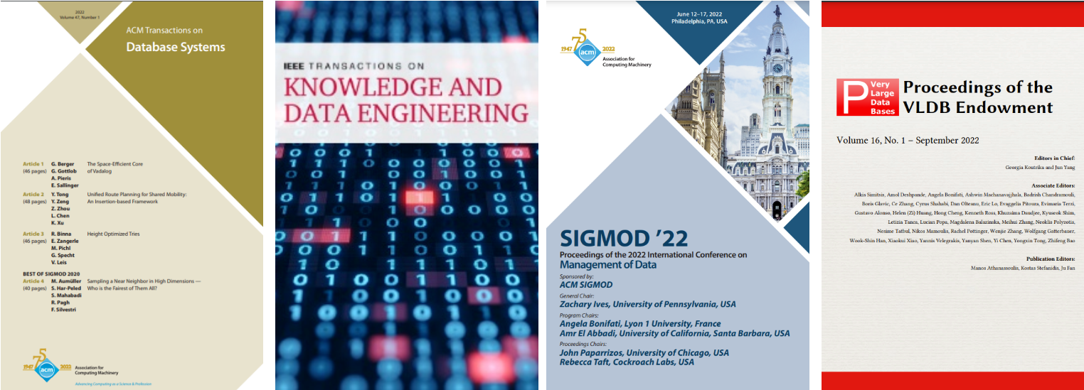 童咏昕的部分科研成果(从左至右):[TODS, 2022 47(1):2] [TKDE, 2022 33(5): 2295-2309] [SIGMOD, 2022: 2135-2148] [VLDB, 2022 15(6): 1159-1172]