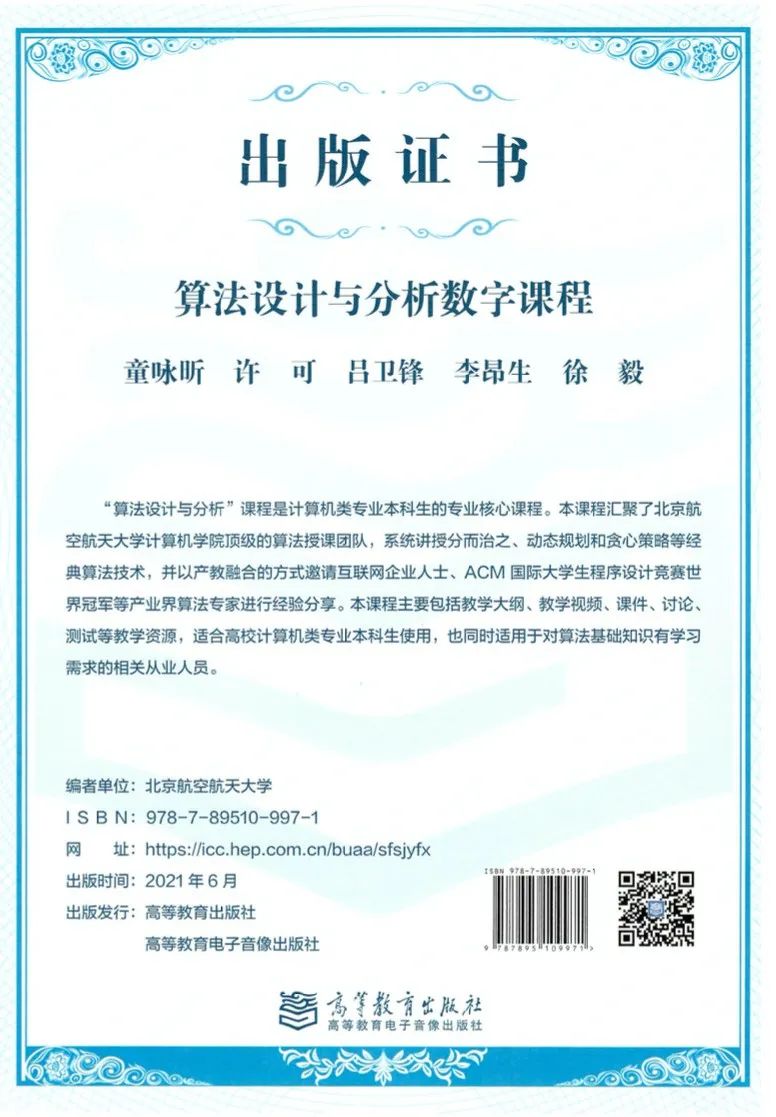 童咏昕还牵头推动课程数字化建设以深化课程改革。出版新形态教材,充分运用多种媒体形式资源,将算法实例运行过程可视化,与电子教案、程序代码等形成全套新型教学资源。搭建新实验平台,与阿里巴巴、第四范式等产业界专家联合设计了200余道题目并部署至“希冀”平台,截止目前,已完成600万余次题目测试。