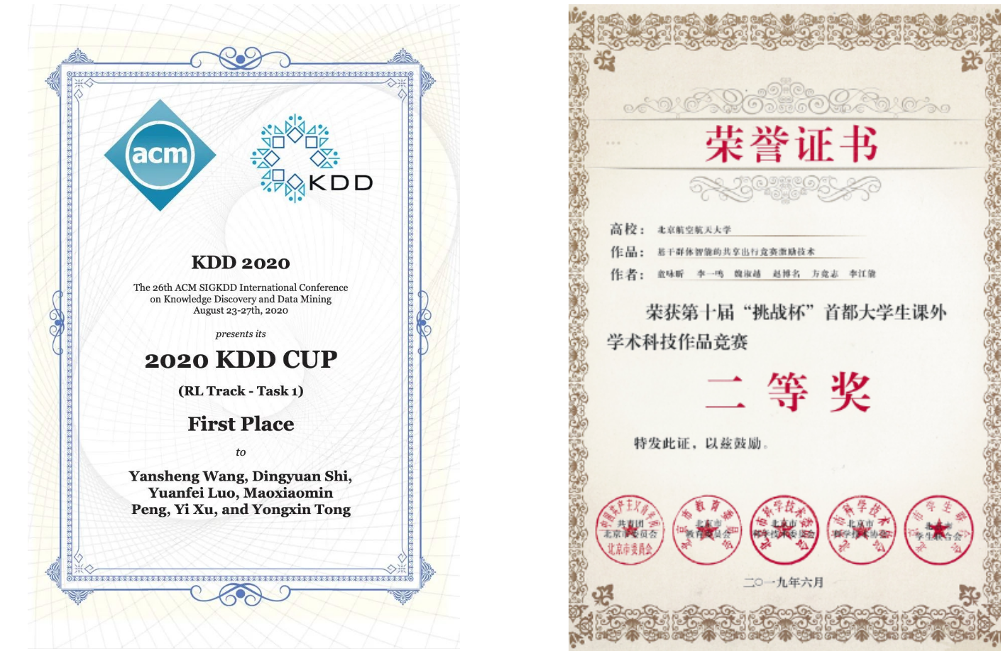 获KDD Cup 2020冠军 获首都“挑战杯”竞赛二等奖