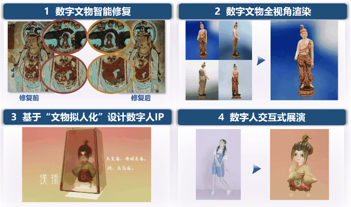 面向数字文物修复业务中耗时长、成本高、高度依赖人工的困难,他带领团队开发数字文物智能修复系统,遵循“以旧仿旧”的文物修复原则,还原历史原貌。