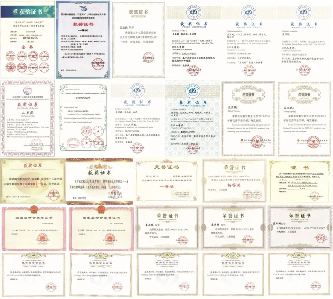 推导每一条公式、重算每一道错题,他连续三年算术平均分、加权平均分、综合测评蝉联书院第一、学院第一,综合测评成绩成为宇航学院历史上首个满分。他积极参加学科竞赛,夯实专业基础,获全国大学生数学、物理竞赛双一等奖等25项高水平竞赛奖项,其中11项一等奖。
