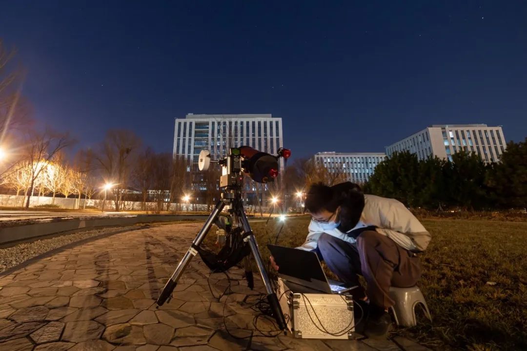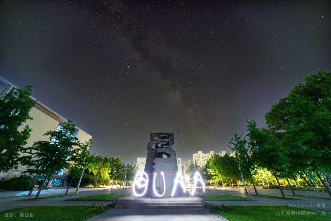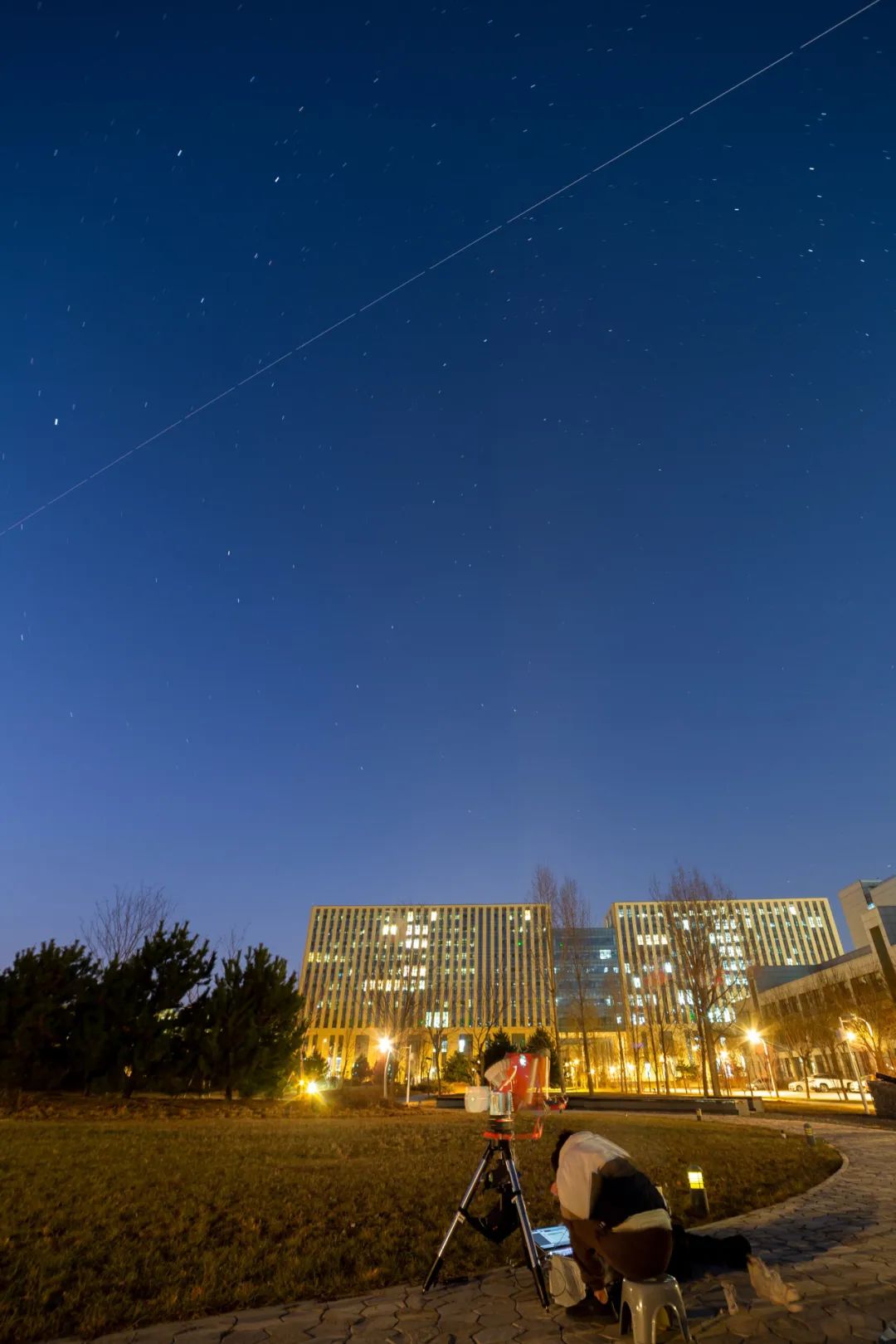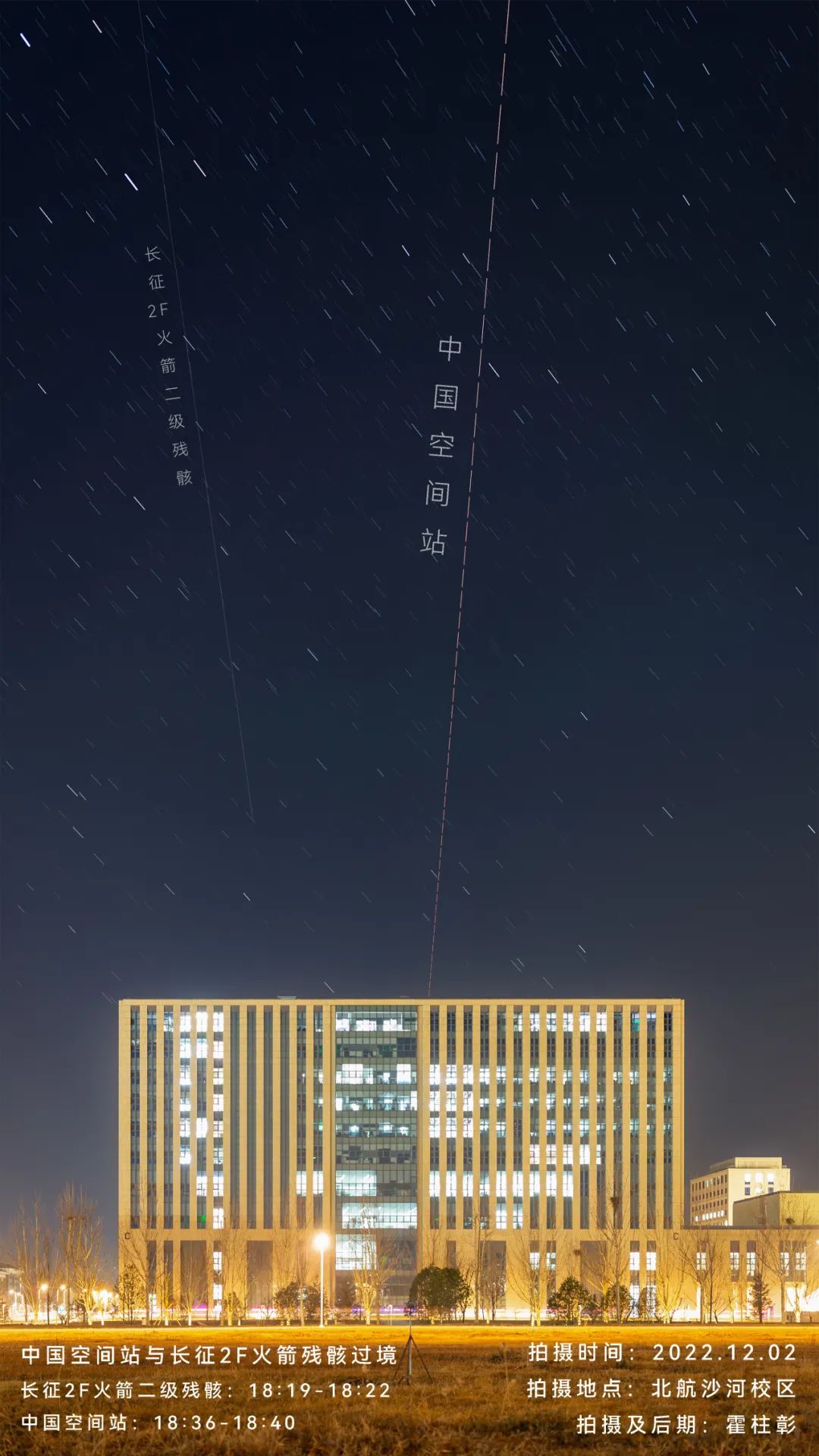 在北航沙河校区内拍摄(弧线为中国空间站过境轨迹)
