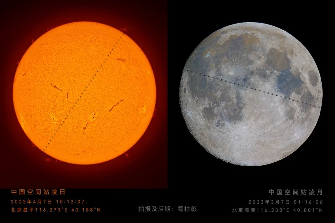 中国空间站凌日、凌月画面(摄影:霍柱彰)