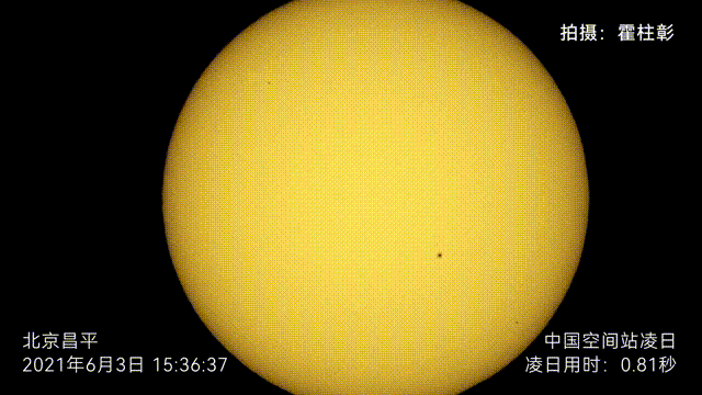 中国空间站凌日凌月画面(摄影:霍柱彰)