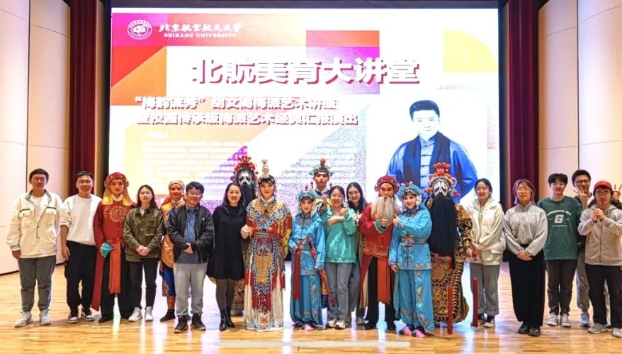2023年4月,学校邀请北京京剧院领衔主演、国家一级演员、梅派第三代男旦传承人胡文阁先生做客“北航美育大讲堂”,与在校师生分享京剧艺术之美?;疃?,戏曲队的同学们带来了梅派经典曲目《霸王别姬》。