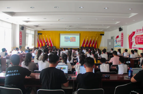 朱英在山西中阳县给同学们做讲座