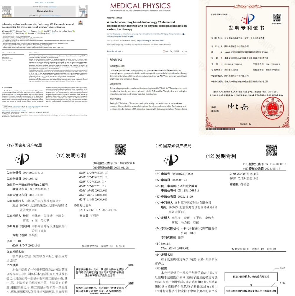 在导师耿立升教授的指导下,李伟光深入聚焦质子与重离子放疗研究领域,博士就读以来,以第一作者身份在SCI一区期刊发表论文多篇。同时,他结合产业实际需求,积极与医疗科技企业合作,成功研发落地多项面向临床的算法,作为学生第一发明人获得国家发明专利授权两项,合作授权专利一项。