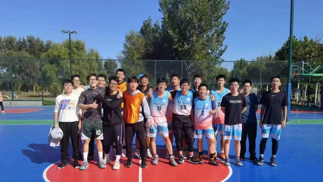他说:“强健的体魄是科研高效开展的前提。”从刚入学时,他便积极加入了物理学院篮球队?!岸釉敝涞挠亚樵谝淮未纹床杏⒄嬷咳攘?。”
